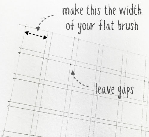 Draw a series of outlines to define your brush stokes. There should be a gap between each stroke. Not the name of each color you will use at one end of each horizontal and vertical strip.
