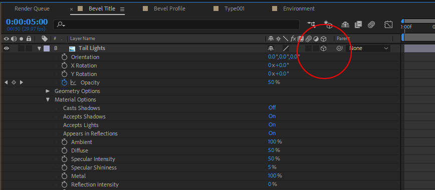 3D Layers in After Effects By default, 3D layers are positioned at the Z coordinate of 0. The means they are sitting right at the viewing plane like any 2D layer. To designate a layer as 3D, click on the box that sits under the cube icon in the switches menu of the timeline. |