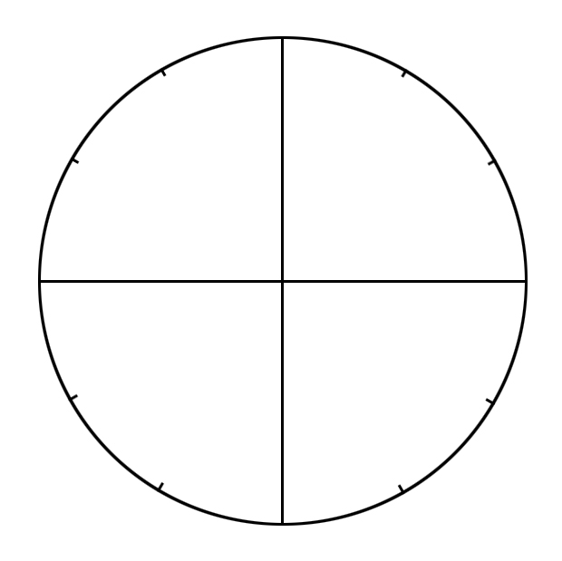 - Run a line from each tic, through the center point of the circle, and onto the opposite tic.