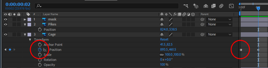 In After Effects, you click on a property's Stopwatch icon at left of the timeline to create a keyframe at a the cursor location. Once clicked, the parameter remains animatable for the duration of the comp. Any changes made to that property will then be recorded in a new keyframe wherever the timeline cursor has been moved to. Careful! Clicking the Stopwatch a second time turns off the Stopwatch and erases all previously recorded animation events for that element. If you need to refine a keyframe's value, move the timeline cursor to the exact frame as a keyframe. The most precise way to do this is to click on the tiny arrows to the left of the Stop Watch to go to the Next Keyframe or go to the Last Keyframe Right-Clicking a Keyframe will bring up a context sensitive menu that offers quick access to relevant tools, such as the Keyframe Assistant menu, where you can introduce "Eases" to the Keyframe's value. |